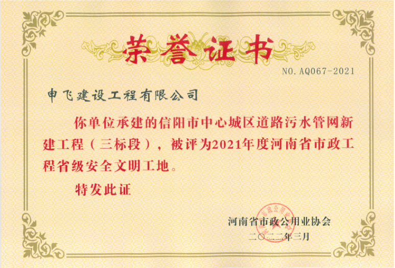 • [04-12]申飛建工再獲“省先進施工企業”、 “市政金杯獎”等多項榮譽